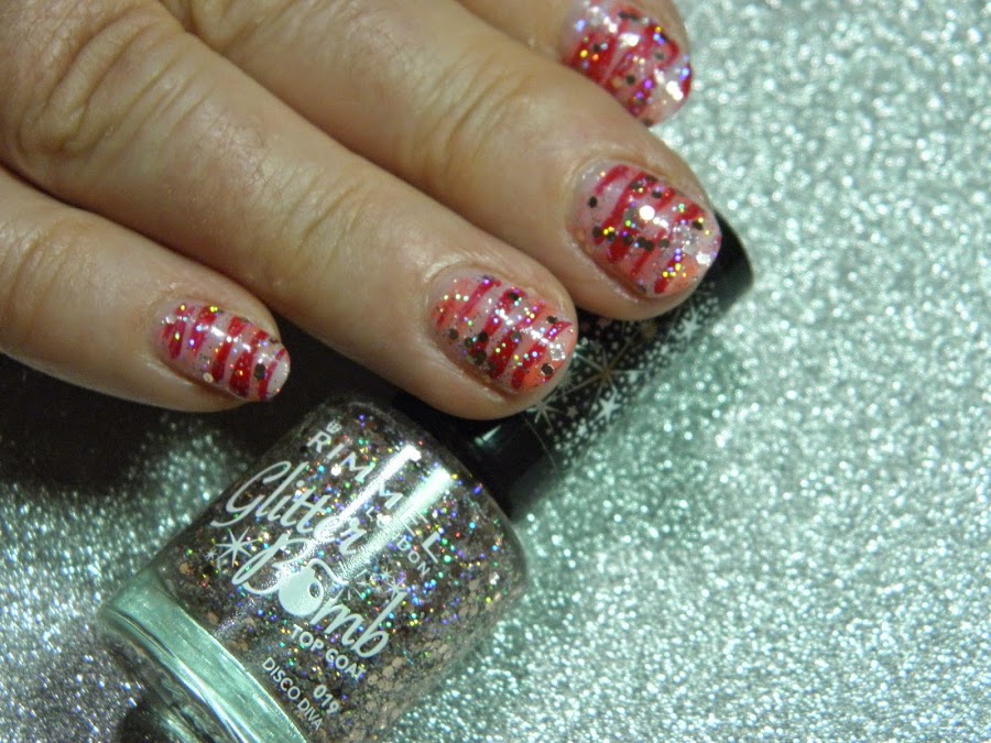 A lo último apliqué el top coat Disco Diva de Rimmel London, que le ha dado un toque ideal, o al menos a mi me ha encantado :)
