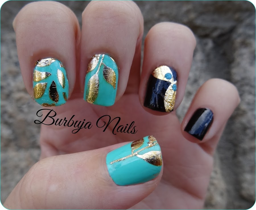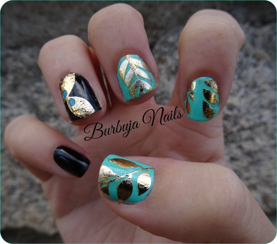 2. Esmaltamos la uña del meñique y del anular en negro y el resto de turquesa.