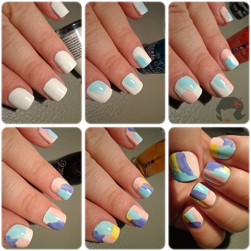 2do: Aplicar las tintas sobre la base seca de la forma en que deseen, porque la intención es que no queden todas las uñas iguales.