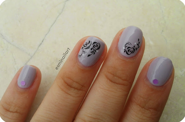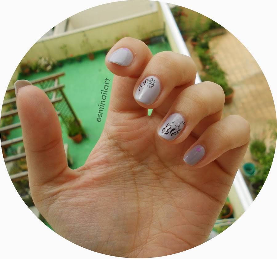 Para la manicura utilicé un esmalte de Shana (la tienda de ropa) morado pastel con un subtono frío que venía en un pack de tres por 2.99? y la verdad es que para el precio no están nada mal, si veis alguno que os gusté yo no me lo pensaría mucho jajaja Además, en las uñas del anular y corazón utilicé dos water decals (link aquí) de diferentes modelos de rosas y en las demás un glitter morado-neón grande en la base de la uña (link aquí).