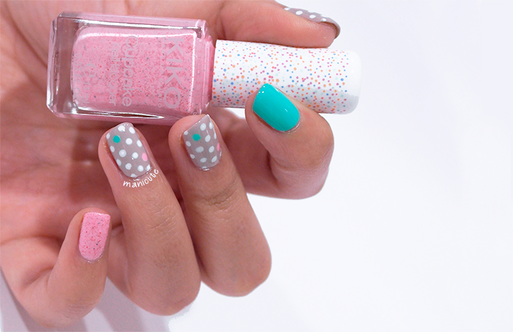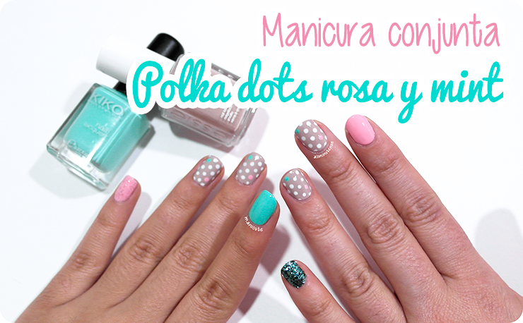 Como veis, en este nail art hemos querido darle un toque simpático a los puntos blancos, pintando uno de ellos en mint y otro en rosita, a juego con la base nude.