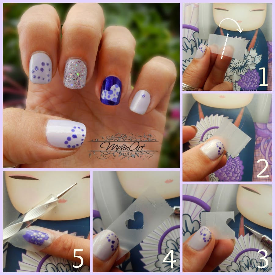 Para el corazón con puntos del dedo anular he hecho una "plantilla" con cinta adhesiva, muy fácil, tal como os enseño en este mini tutorial.
