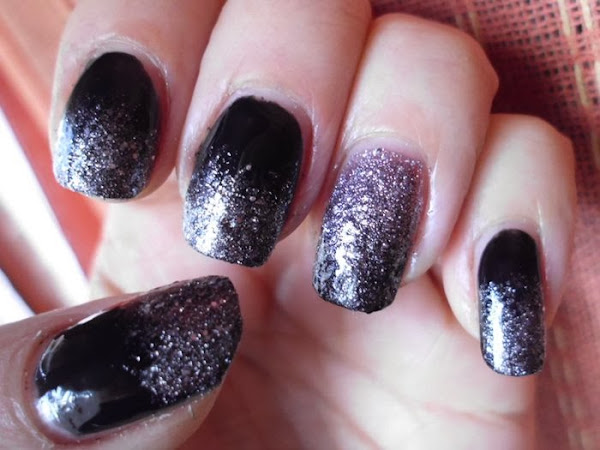 En esta manicura he usado el esmalte de efecto arena que recibí en la misma cajita y un esmalte negro. La he hecho con la esponja.