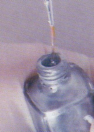 11-Humedezca el pincel N 0 en el esmalte plata con partículas de brillo.