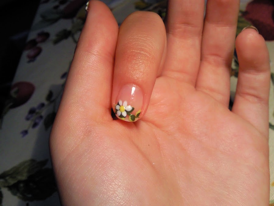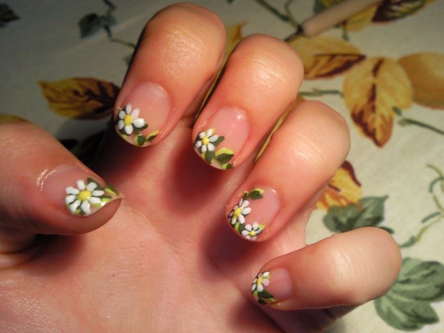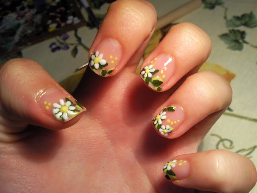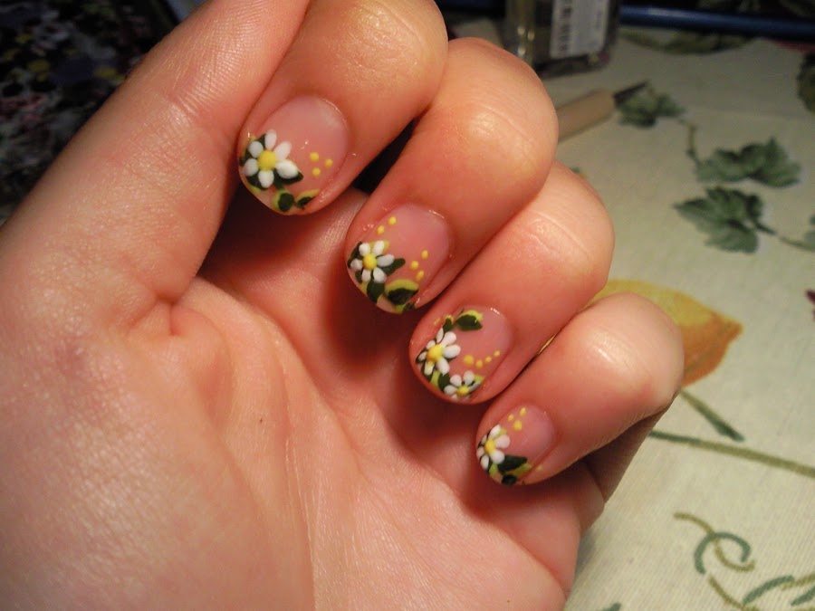 Por último, usamos esmalte amarillo para hacer el centro de las margaritas y añadir algunos puntitos por el resto de las uñas.