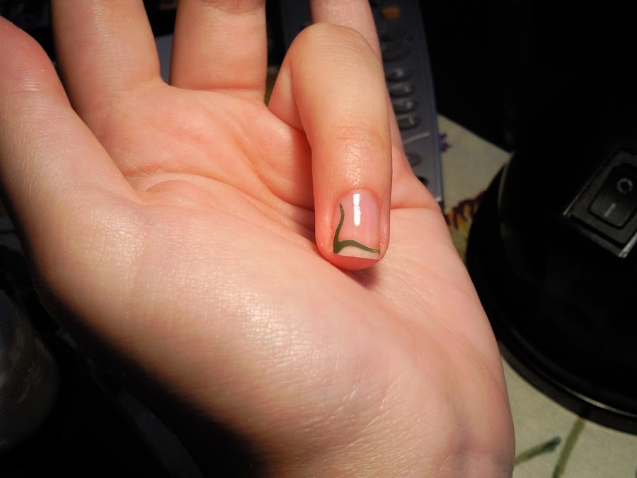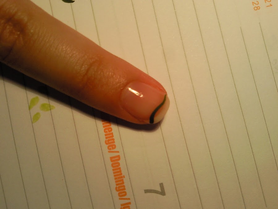 Empiezo haciendo una línea curva en la punta de cada uña, y en el dedo anular añado otra hacia arriba.