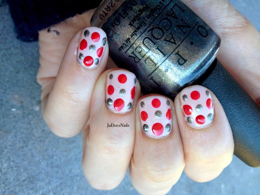 Hoy os quiero mostrar otra manicura que me he hecho utilizando la bolita de dos agujas de coser para conseguir dos tamaños de puntos diferentes (a falta de pinceles de nail art buenas son las agujas!)