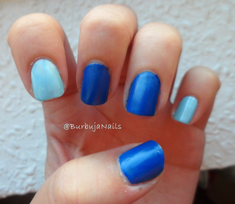 Ya que el esmalte denim es bastante mate aunque no del todo como ya habéis visto he querido jugar con los efectos en esta manicura. Respecto al top coat mate doy dos capas porque con una no acaba de matificar del todo, asi que os recomiendo más el de deliplus que no he probado pero tiene muy buenas críticas en otros blogs.