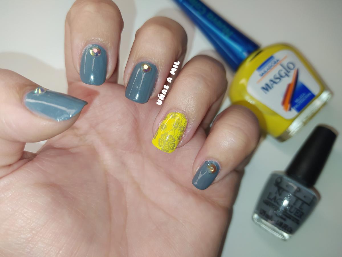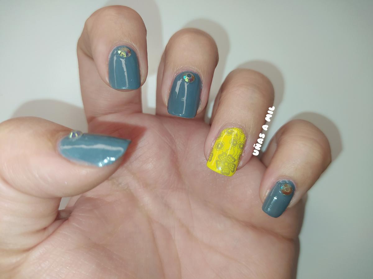 Como podréis observar es un diseño de uñas muy sencillo de hacer, además de económico, ya que las piedras creo recordar que las compré un un bazar muy barato y la placa de estampación es de la web asiática Born Pretty Store que también tiene unos precios con descuentos que están genial.