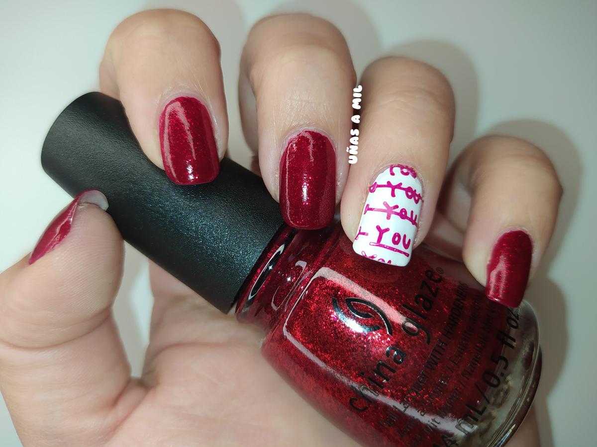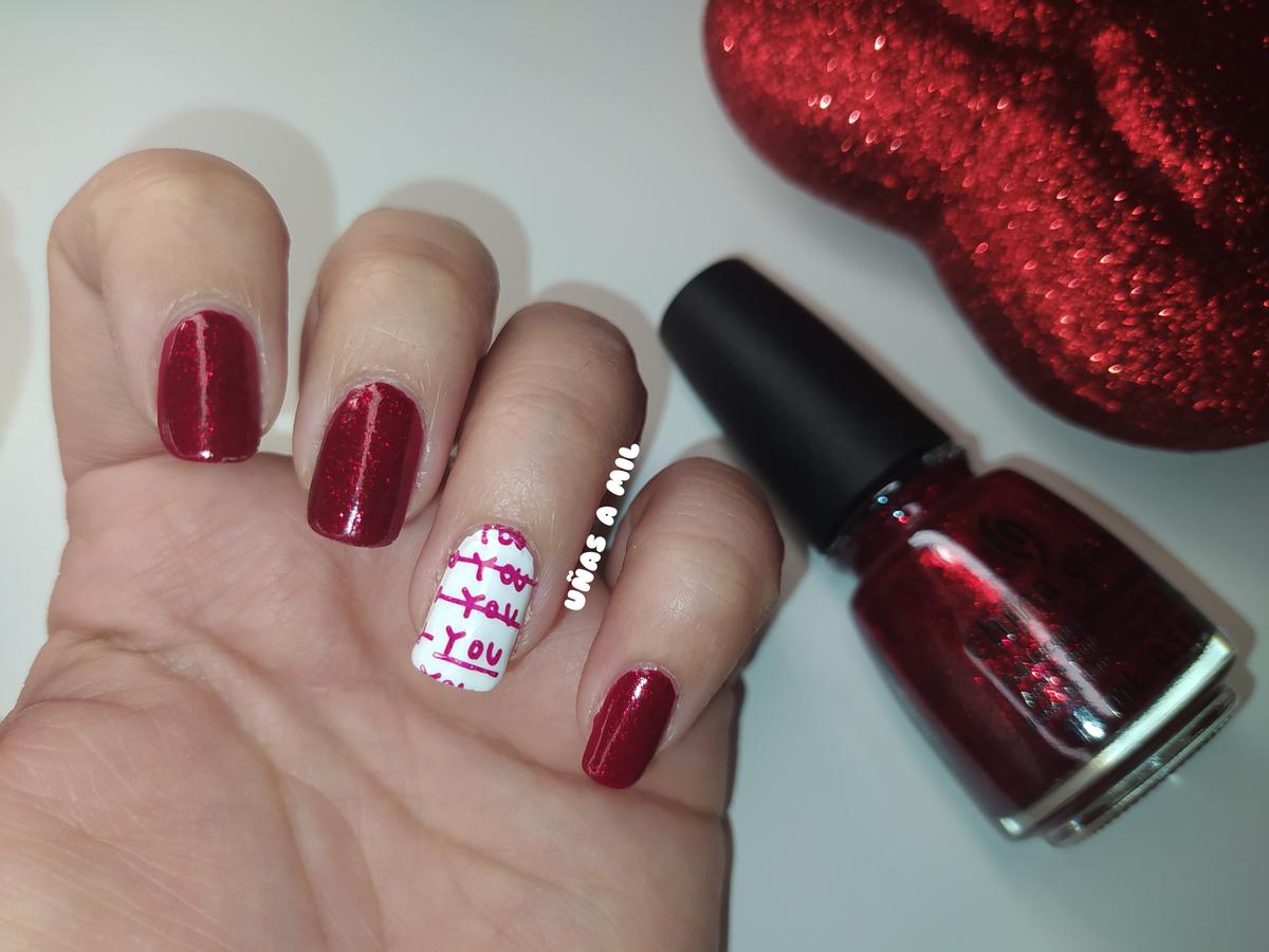 Para estampar, he utilizado el mismo rojo ”Ruby Pumps’‘ de China Glaze, y la verdad que me ha sorprendido gratamente porque ha transferido el diseño en la uña perfectamente.