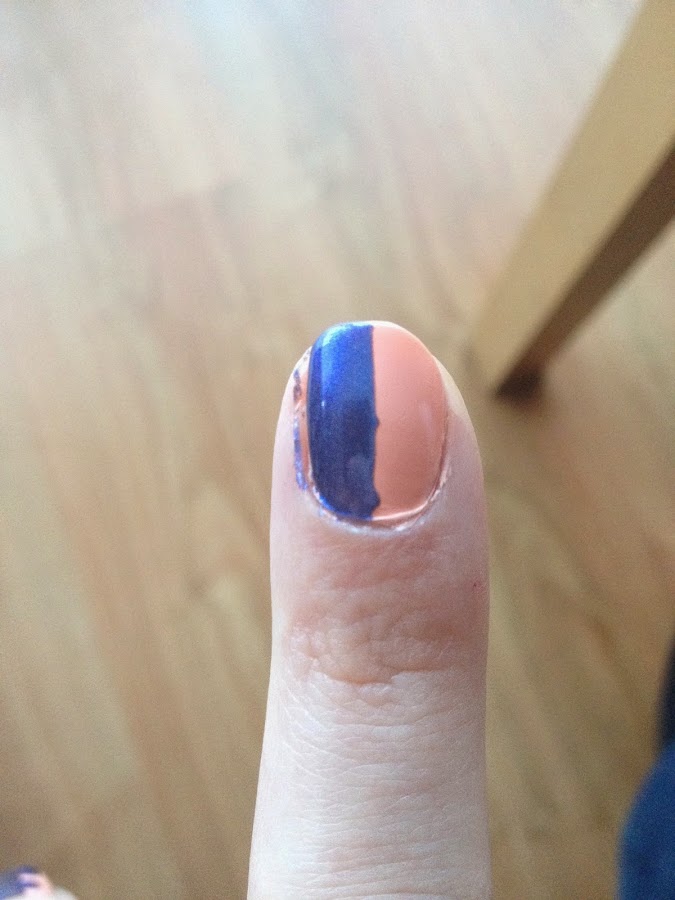 Primero de todo he pintado media uña con Peach Melba de Barry M y la otra mitad con Into The Night de OPI.
