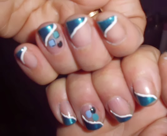 Manicura Fantasía Azul. Le estoy cogiendo al nail art azul, siempre estilo manicura francesa, que es la que más me gusta, pero con variantes.