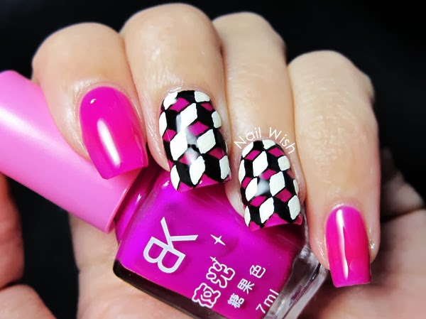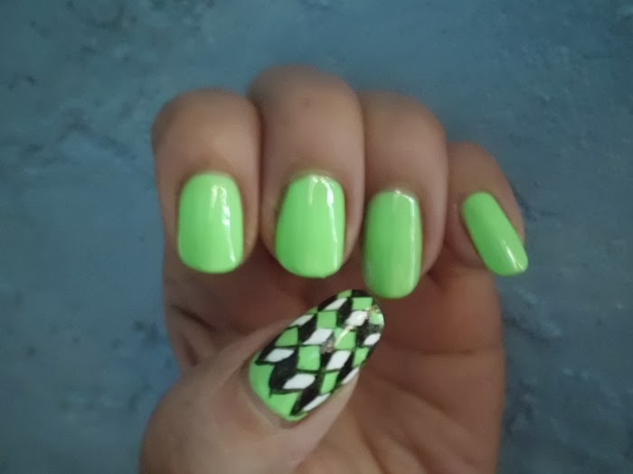 Luego miro bien el patrón de coloreado de la manicura que quiero copiar y pongo los colores en su sitio. O donde te apetezca. Teniendo en cuenta que el esmalte blanco es flúo.