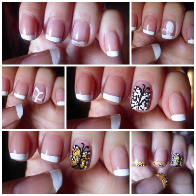 Esta es de esas manicuras que empiezas con una idea y terminas con otra totalmente distinta. Que tarde me ha dado, me he ido de una manicura a otra porque lo que iba haciendo no me acababa de gustar. Al final me he decidido por una Manicura Francesa Alas de Mariposa.