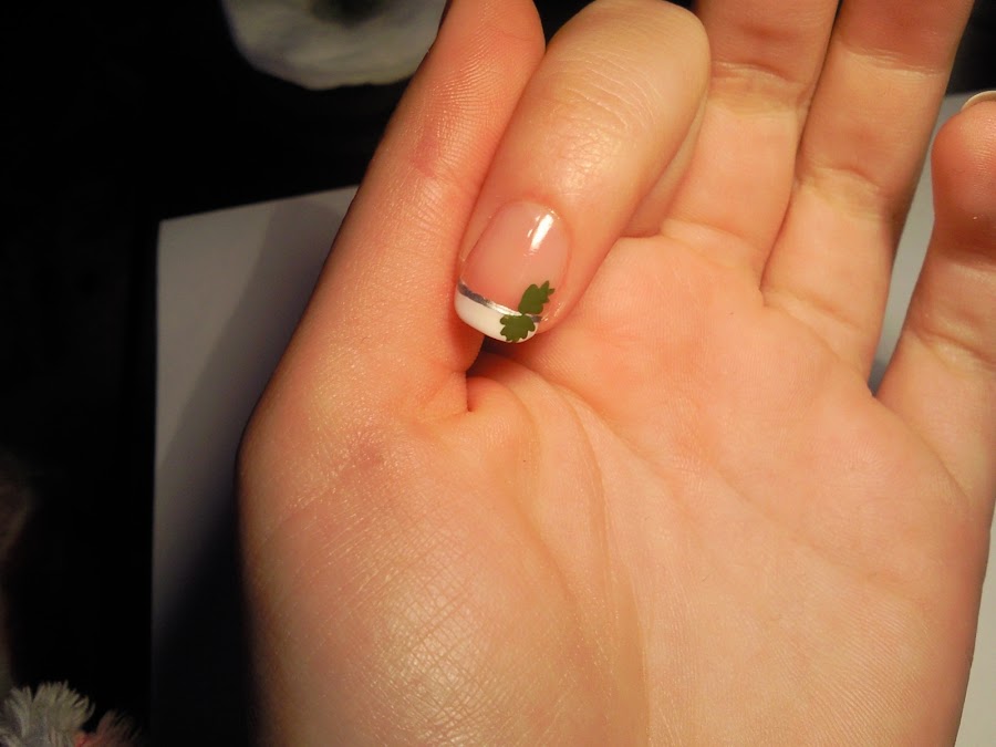- White, red, green and silver polish.