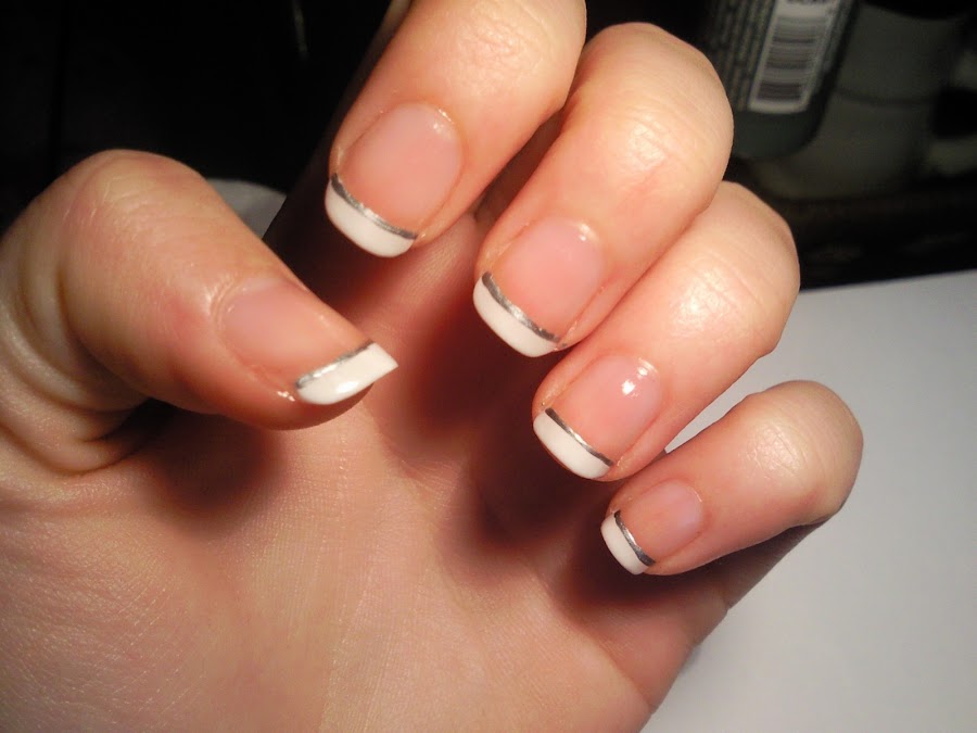 Añade una línea plateada al borde la manicura francesa.