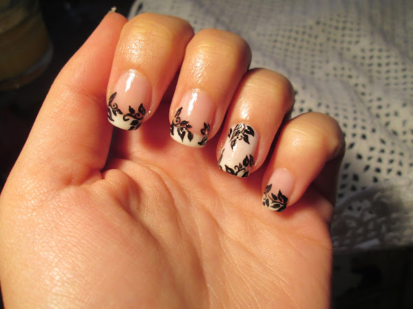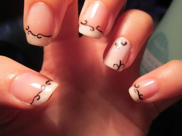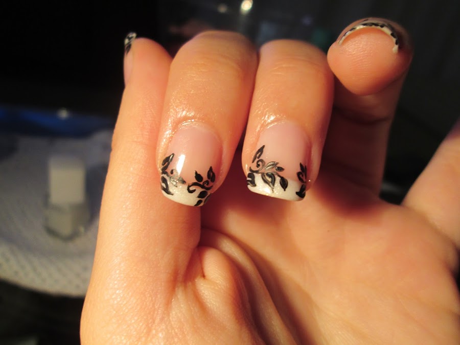 Empiezo haciéndome una manicura francesa sencilla, y en el dedo anular pinto toda la uña. Os recomiendo usar un blanco semitransparente y con algo de brillo, ya que un blanco opaco, normal y corriente, puede darle al diseño un aspecto algo rudo.