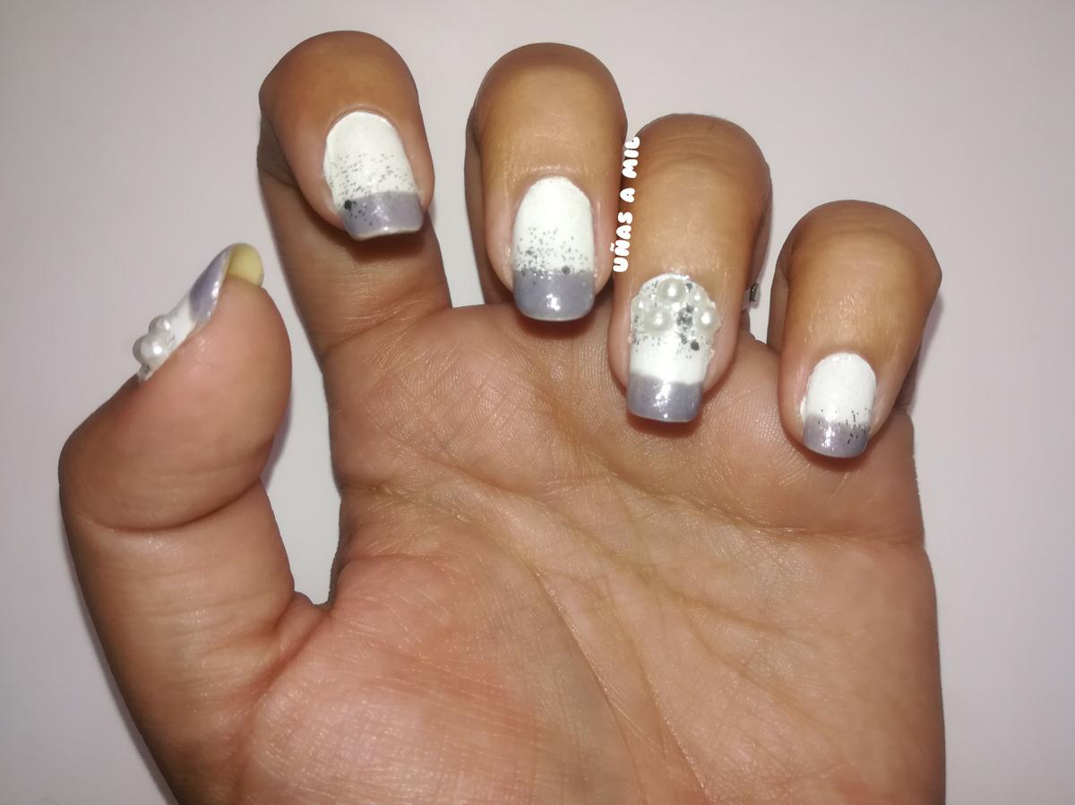 Hace un tiempo compré en la web de Born Pretty Store unas perlitas para las uñas, así que he decidido combinarlas con una manicura francesa en blanco y gris con purpurina.
