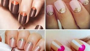 4. Aplica color: Tras escoger dos colores que contrasten, aplica el primer tono sobre la uña completa, La capa de base debe ser lo más fina posible para un buen resultado. Déjala secar durante el tiempo necesario y a continuación aplica la segunda capa de color con mucho cuidado y respetando la forma de la imagen. Os pongo algunos ejemplos para que entendáis cómo es el proceso.