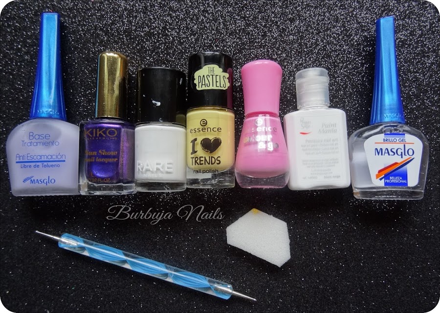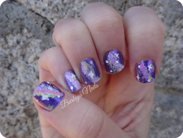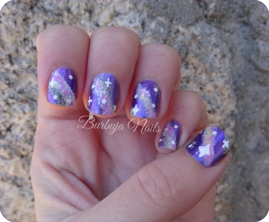 El esmalte base es un morado precioso con un pequeño shimmer dorado (que no he conseguido captar) de kiko que compré el otro año en las rebajas y que estaba sin estrenar ¿que raro verdad yo con esmaltes sin estrenar!?