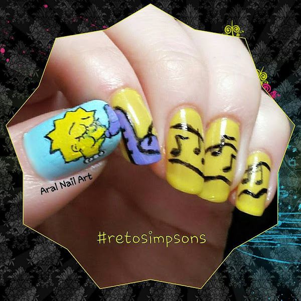 Esta es mi manicura de Lisa Simpson para Esmaltando con Ñ. Quise reflejar lo que más le gusta hacer a este divertido personaje: tocar el saxo. He usado esmalte para la base y acrílicos para los dibujo ...