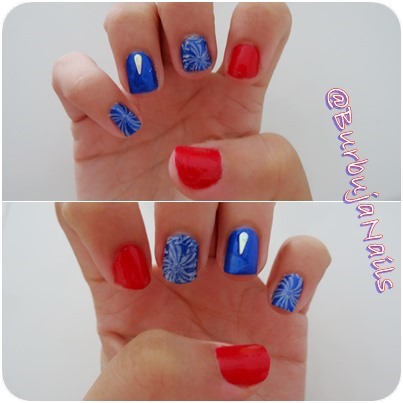 2. Esmaltamos la uña del pulgar y la del índice en rojo y el resto en azul.
