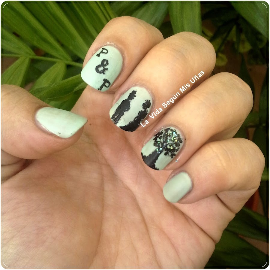 Hoy miércoles os traigo una manicura inspirada en el libro orgullo y prejuicio. es una manicura muy sencillita en dos tonos: verde pastel y negro.