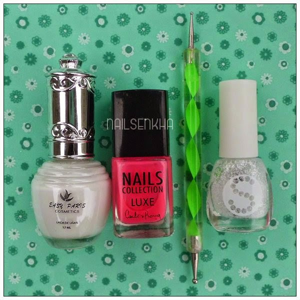 *Luego pintamos todas nuestras uñas con el color 553 y una en blanco.