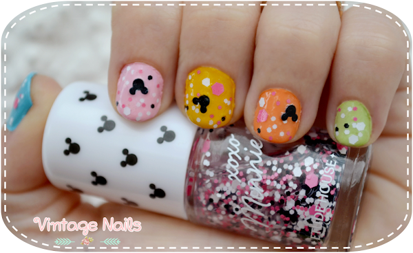 Para mi gusto tiene poca purpurina y demasiado esmalte transparente, por lo que resulta difícil pillar el glitter. De hecho, tuve que ayudarme de un palito de naranjo para pescar las caritas de Minnie.