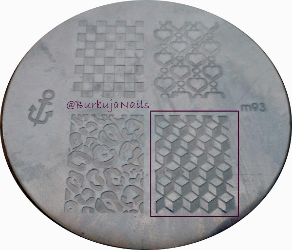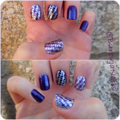 4. En la uña media lo hacemos al revés, estampamos el diseño en plata.