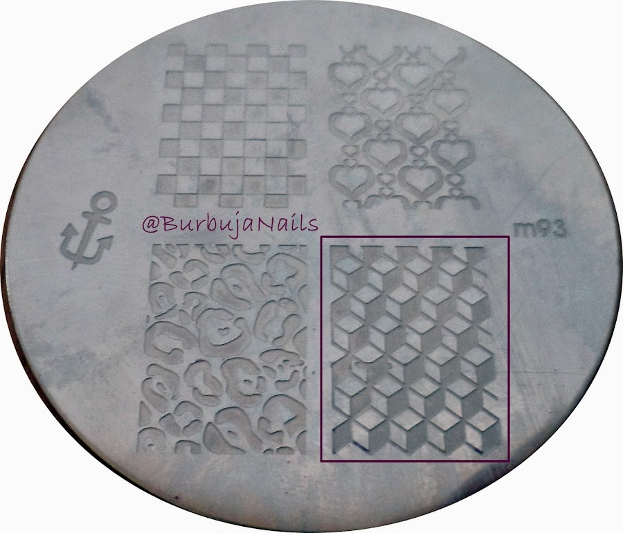 3. Cuando el esmalte plata a secado estampamos el diseño en morado.