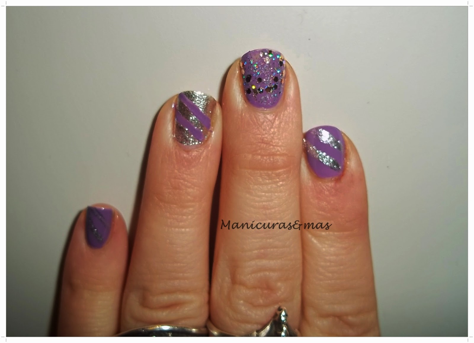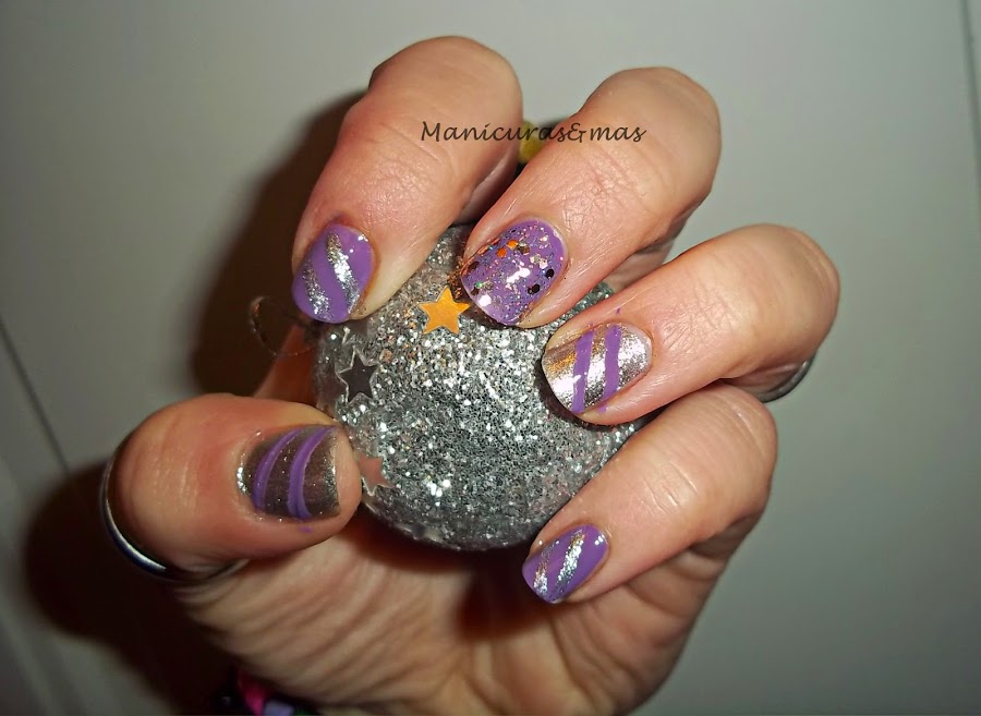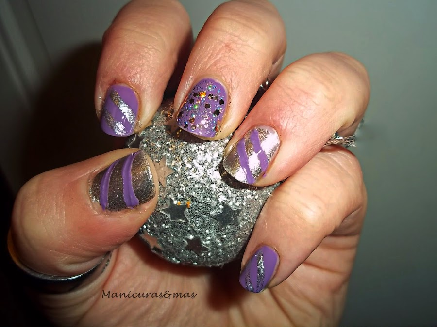 Hoy martes, como bien dijo Cyra, os traigo mi propuesta de manicura para estas Navidades. Le he estado dando mil vueltas a la cabeza ya que no se me ocurría nada que hacer, esta semana no he estado nada inspirada. Menos mal que siempre está ella para darme alguna idea y me dijo que los colores morados y plateados suelen quedar bien. Pues esas son las dos tonalidades que lleva mi manicura.