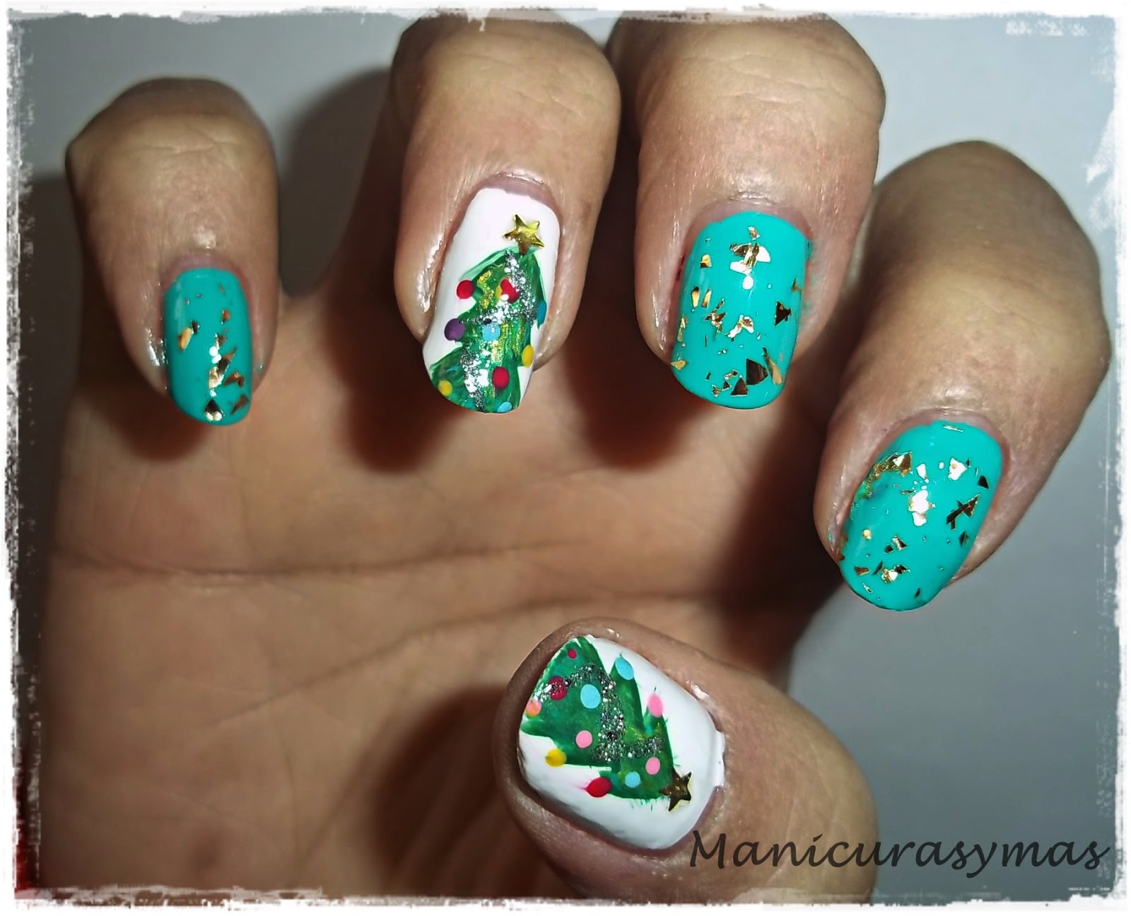 Si queréis lucir el día de Navidad una manicura bien llamativa, esta es perfecta. A mi madre le encantó y a la gente le llamaba mucho la atención. Como podéis comprobar, tiene las uñas super grandes, por eso las manicuras con dibujos más elaborados se los hago a ella, que en mi "miniuñas " poco puedo hacer.