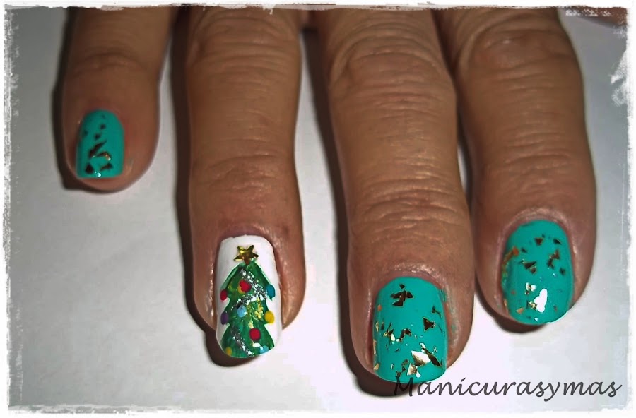 Hoy os traigo una manicura que le hice a mi madre. Ya que está la Navidad encima, decidí hacerle una manicura bastante llamativa como a ella le gustan, así que me decanté por hacerle un arbolito de Navidad.