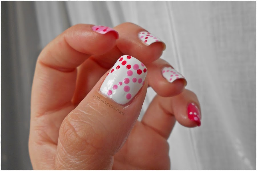 En mi caso, usé tonos rosas y blanco, que fui combinando entre sí. Pero, como siempre os digo, podéis varias los tonos a vuestro gusto o incluso hacerlo de manera multicolor mezclando varios esmaltes.