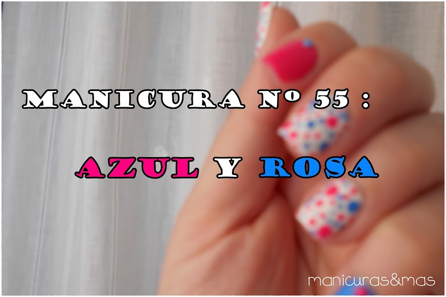 Esta vez (y sin que sirva de precedente) no he usado ningún top coat para terminar la manicura, ya que el esmalte azul es mate y el rosa semimate (podéis ver que tiene un ligero brillo cuando le incide la luz). Podría haber puesto un brillo y haber convertido estos esmaltes en unos de acabado brillante, pero me apetecía cambiar y dejar la manicura mate esta vez.