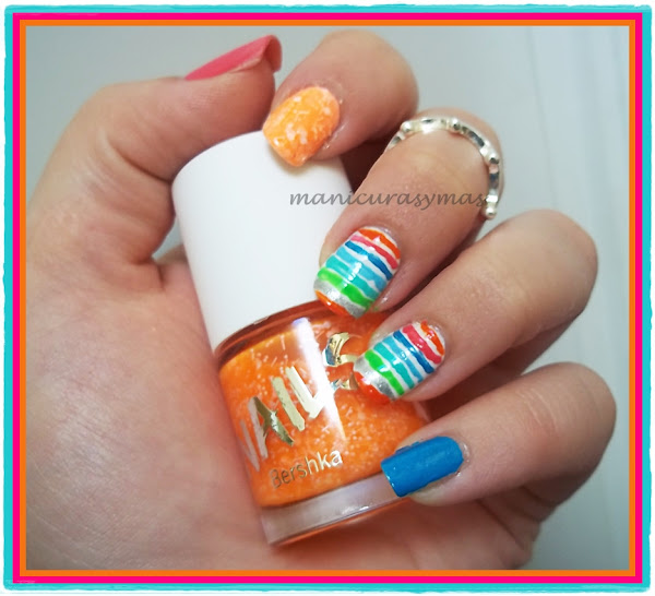 Me encanta llevar esta clase de manicuras tan coloridas en verano, sobre todo cuando hemos cogido un poco de moreno resaltan un montón (no es mi caso que soy casper). Es una manicura que con cualquier combinación de colores quedará muy chula.