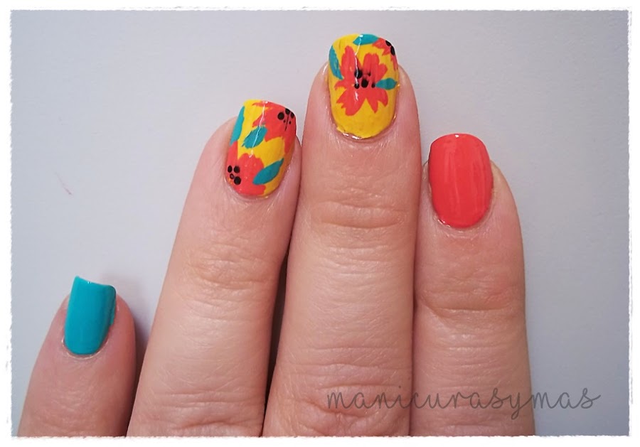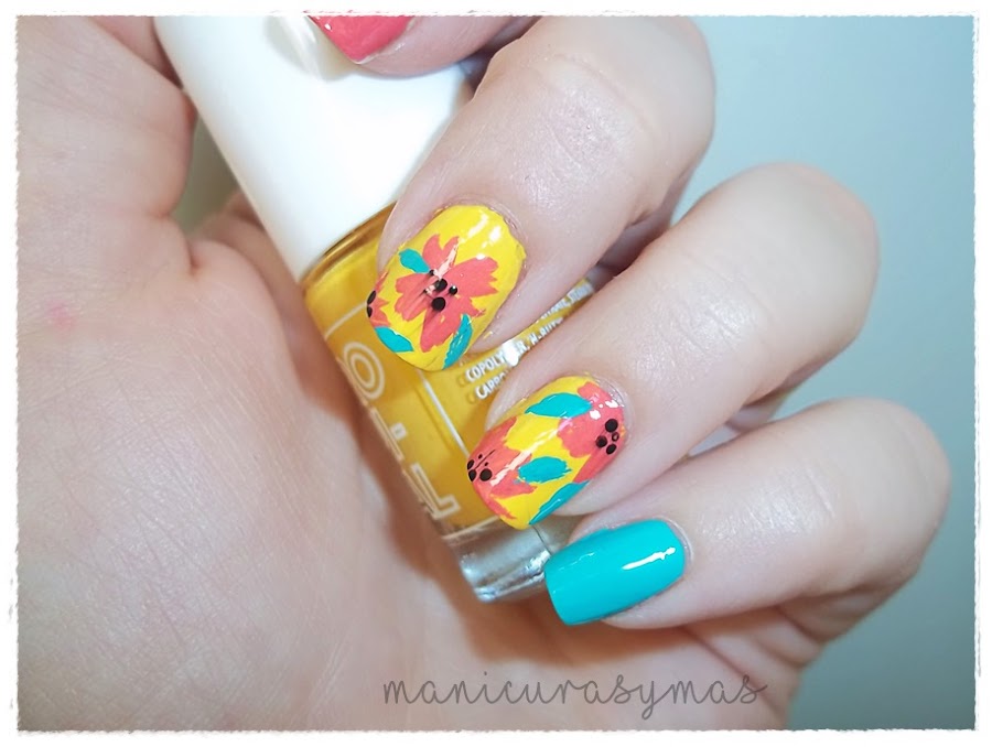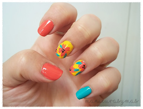 Hoy os traigo una manicura veraniega, ya que hace tiempo que no os subía ninguna. Pero es que me he aficionado a ponerme waterdecals y no me hago otra cosa. Así que hace unos días me vino la inspiración y me hice una manicura dibujada a mano alzada.