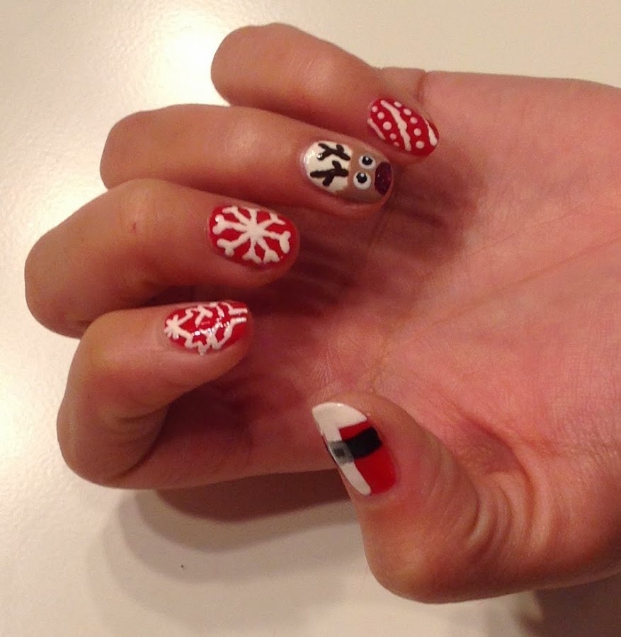 En mi caso me encanta por ejemplo, pintar todas las uñas de rojo dejando la uña del anular en blanco y dibujándole un reno, ¿no es adorable?