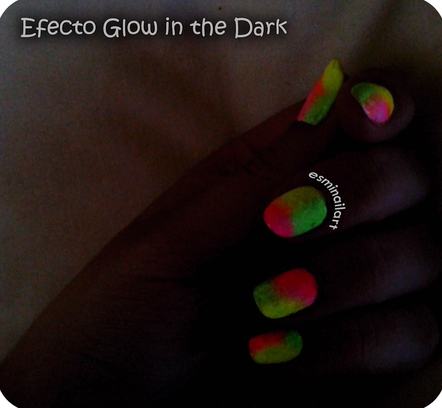 La verdad es que el resultado me gustó bastante, en las fotos no se ve ni la mitad de lo llamativos que son los tonos, no conseguí captarlos ni con la cámara ni con el móvil... Además, los esmaltes son glow, es decir, brillan en la oscuridad!! Es una pasada, cada vez que me pongo este tipos de esmaltes me quedo como una tonta mirándome las uñas en la cama a oscuras jajajjaja