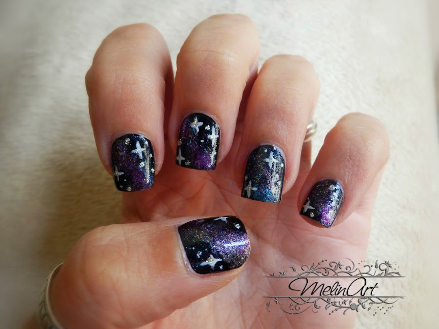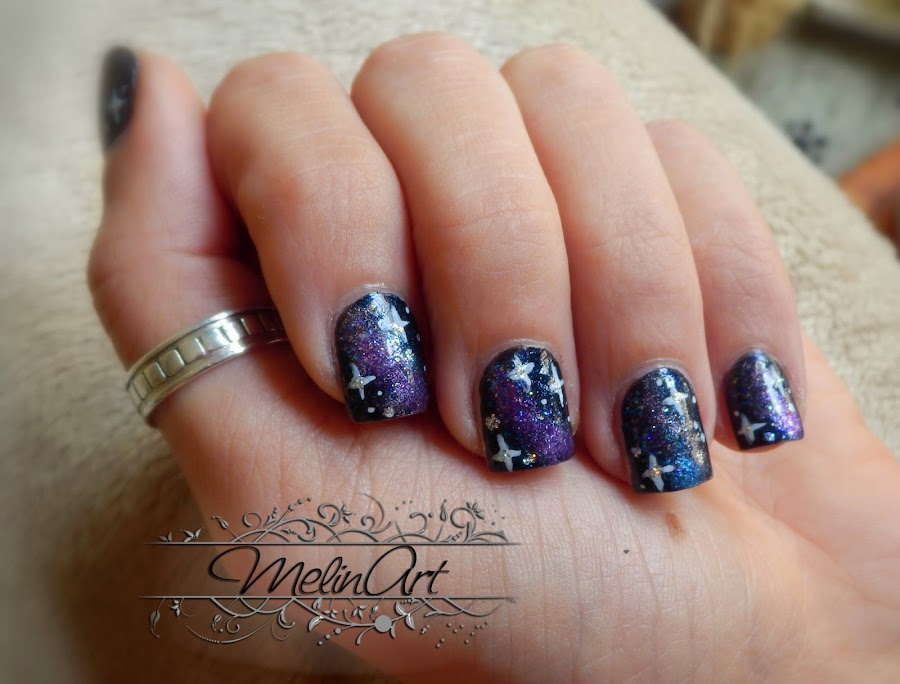 El diseño que he hecho inspirándome en la noche ha sido un cielo estrellado simulando un efecto galaxia que hace tiempo quería probar.