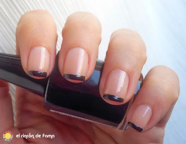 Como no tenía mucho tiempo me decidí por hacer una francesa con los colores de los complementos y aplicar brilli brilli degradándolo en las puntas. Para base de la manicura francesa usé dos capas de la base de Essence que veis en la foto que deja un aspecto muy saludable y seca muy rápido. La francesa la hice a mano, no quedo muy mal ¿no?