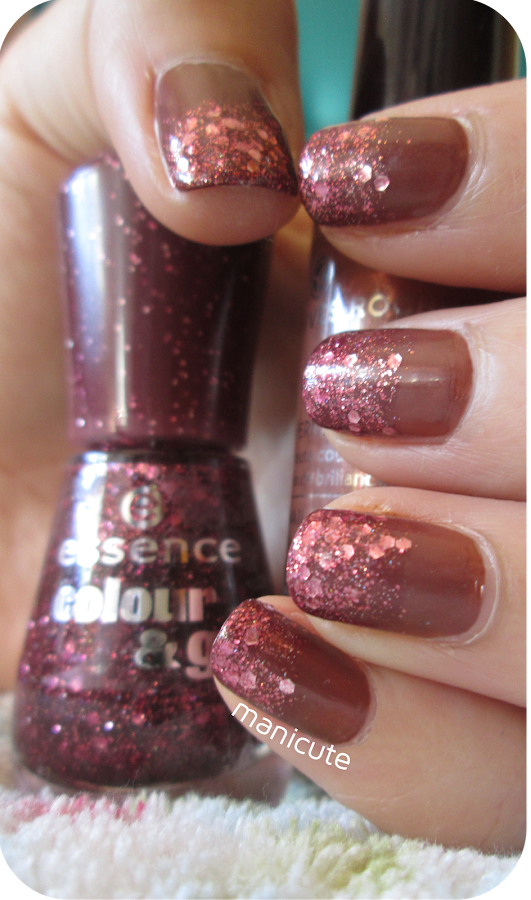 ¡Continuamos con la manicura! Una vez tuve bien seca la base marrón, pinté directamente con el esmalte de glitter cobrizo de essence sobre una esponjita de maquillaje, y de ahí apliqué en la uña una primera capa. Gracias a esta técnica, que conozco por Nailwish (podéis ver el tutorial aquí) se puede aplicar cualquier esmalte de purpurina sin que tarde mil siglos en secar. En mi caso, apliqué una segunda capa de glitter sólo en las puntas para crear el efecto degradado, y gracias a la esponja no me quedó abombada la manicura. Una gozada.