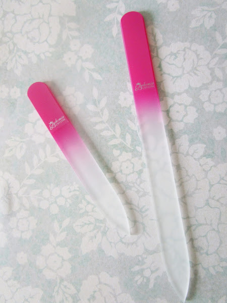 Por otro lado, las uñas pueden pasar de ser frágiles y quebradizas a fuertes y duras en una embarazada, o viceversa, pero en cualquier caso debemos ser cuidadosas con ellas. Las limas son un producto indispensable en cualquier manicura o pedicura, pero la verdad es las usuales resultan un poco dañinas para mis uñas, así que me decanté por dos tamaños (una más larga y otra más corta) de vidrio templado, en concreto de la firma Bohemia Crystal.