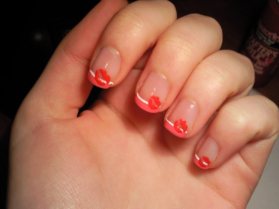 And, as the last step fot the french manicure, make a little lip print over it, to the side. It is not a difficult step, just make sure to define nicely the upper part and keep the two parts separated. Try to make the borders irregularly too.