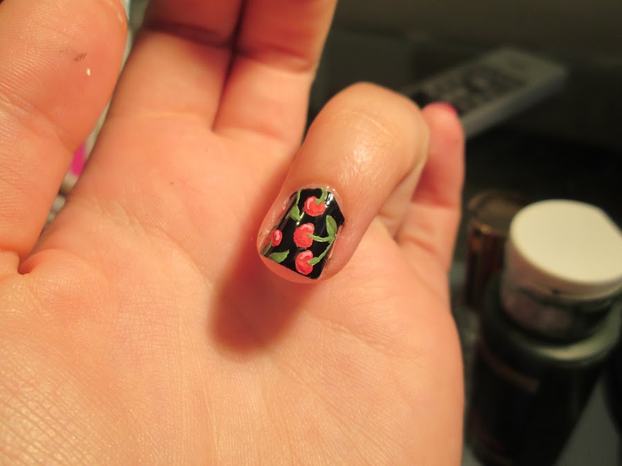 Para darle un poco más de dimensión, puedes mezclar algo de rojo y blanco y hacer un tono un poco más claro para dibujarle "brillo" a las cerezas.