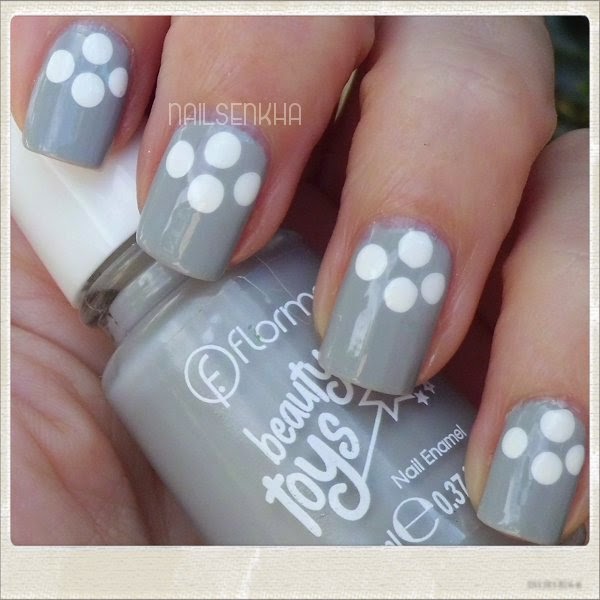 *Pintamos las uñas de color gris y con un dotting tools hacemos los puntos según la foto, el tamaño de los puntos ya depende del gusto de cada una yo en este caso he usado el de mayor tamaño.