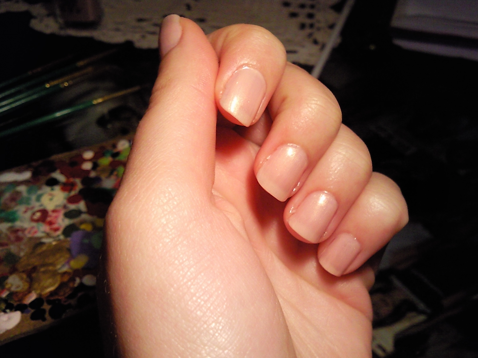 Empiezo dando dos o tres capas del esmalte rosa por toda la uña.