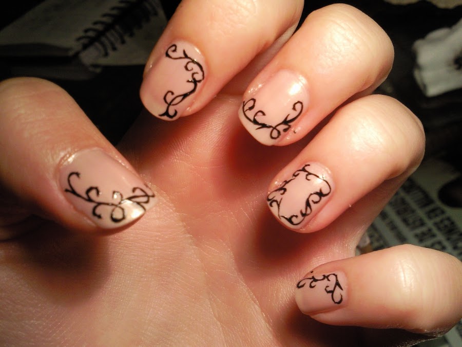 Y si quieres, puedes añadir algunos puntitos al final de los rizos. Finalmente, la manicura acaba de esta forma: