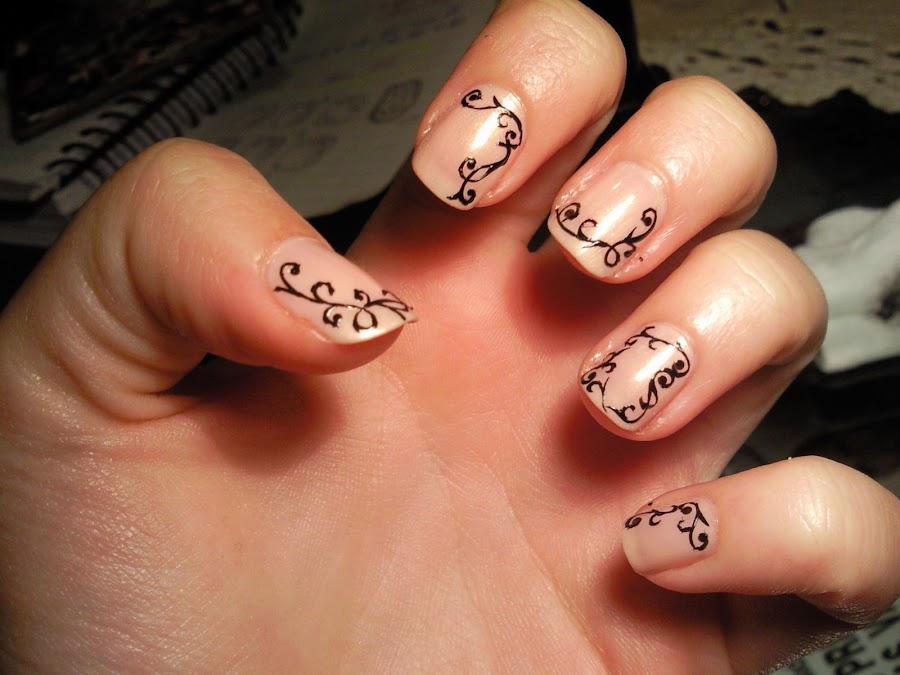Y ahora, con mucho cuidado, hacemos los primeros trazos del diseño en negro. Os aconsejo que busquéis alguna imagen por internet que os guíe y os de ideas para hacerlo, como ésta: